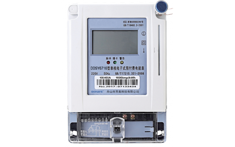 DDSY6716型電子式單相預(yù)付費(fèi)電能表,采用先進(jìn)的專(zhuān)用集成電路設(shè)計(jì),全自動(dòng)表面貼 裝(SMT)生產(chǎn)工藝制造。電能表的線路設(shè) 計(jì)和元器件選擇以較大的環(huán)境允差為依據(jù), 可保證整機(jī)長(zhǎng)期穩(wěn)定工作,高精度、高過(guò)載、 低功耗,可靠性能高。采用符合國(guó)際標(biāo)準(zhǔn)的先進(jìn)的智能IC卡技術(shù)實(shí)現(xiàn)預(yù)付費(fèi)方式,內(nèi)置磁 保持繼電器。通過(guò)控制繼電器實(shí)現(xiàn)控制負(fù)載 的通與斷,實(shí)現(xiàn)督促用戶先買(mǎi)電后用電的功能。