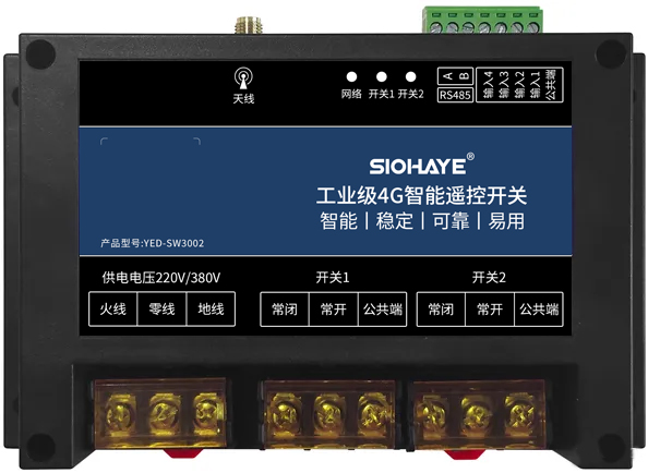 YED-SW3002 是本公司自主研發(fā)的遠程遙控開關(guān)。支持4G網(wǎng)絡(luò)和本地輸入通道外接按鍵控制。能夠?qū)崿F(xiàn)遠程控制,本地輸入通道外接按鍵控制。支持自動、任務(wù)、定時任務(wù)、輸入聯(lián)動等高級功能,設(shè)備支持標簽定制,硬件定制,APP私有化部署等高級方案。